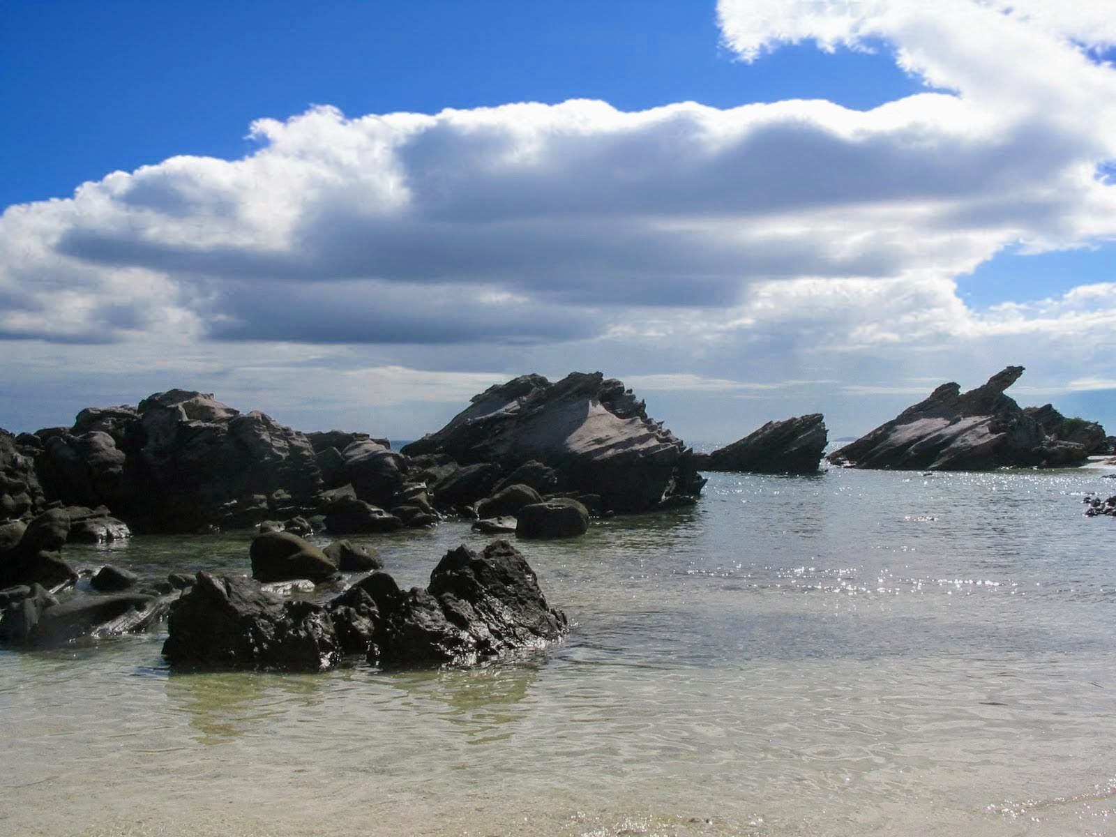 E’ un angolo di paradiso: una piccola spiaggia di sabbia bianca con alle spalle una foresta. Non so cosa pagherei per poter stare qualche giorno qui, da solo con una tenda. Un po’ come quando, durante l’estate dopo la maturità, sono stato in Grecia sull’isola di Moni, deserta, abitata solo da stambecchi e pavoni. Le uniche costruzioni erano i bagni e una baracca-cucinotto dove, due volte al giorno, una vecchietta arrivava, con una barca di pescatori, per cucinarci qualcosa. In tutta l’isola eravamo in sei. Bei tempi quelli! Con il motoscafo, circumnavighiamo tutta l’isola, infilandoci tra le insenature in paesaggi da favola. Le onde erodono la roccia calcarea alla base e l’effetto è quasi di sospensione. L’acqua è colore smeraldo, trasparentissima. Naturalmente è d’obbligo una sosta per sguazzare in quest’acqua cristallina.