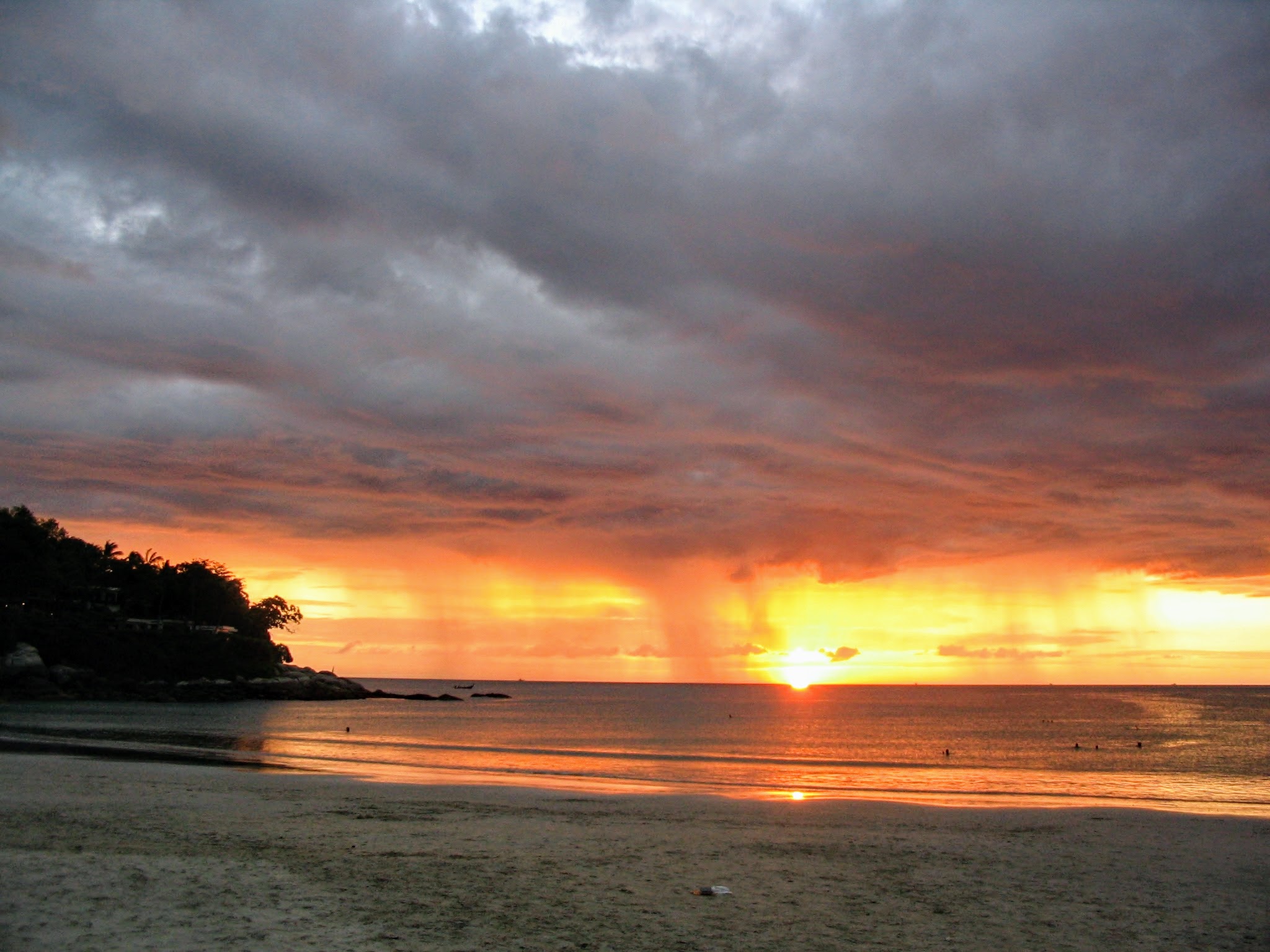 Ci avviamo verso Phuket, in lontananza c’è un acquazzone. Quando arriviamo al resort, assistiamo ad un tramonto da favola, l’orizzonte è in fiamme. Mi siedo sulla spiaggia deserta a guardare il temporale: certi spettacoli danno un senso a tante cose e, forse, anche la risposta a tante domande.
