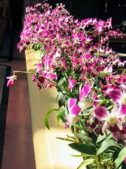 E’ una specie di giardino pensile terrazzato, con una copertura trasparente e una fontana al centro. E’ pieno di piante e di orchidee. A differenza di altri grandi hotel, dove la magnificenza è data dall’eccesso, qui regna una sobria eleganza che mantiene comunque i caratteri tipici dell’architettura orientale.
